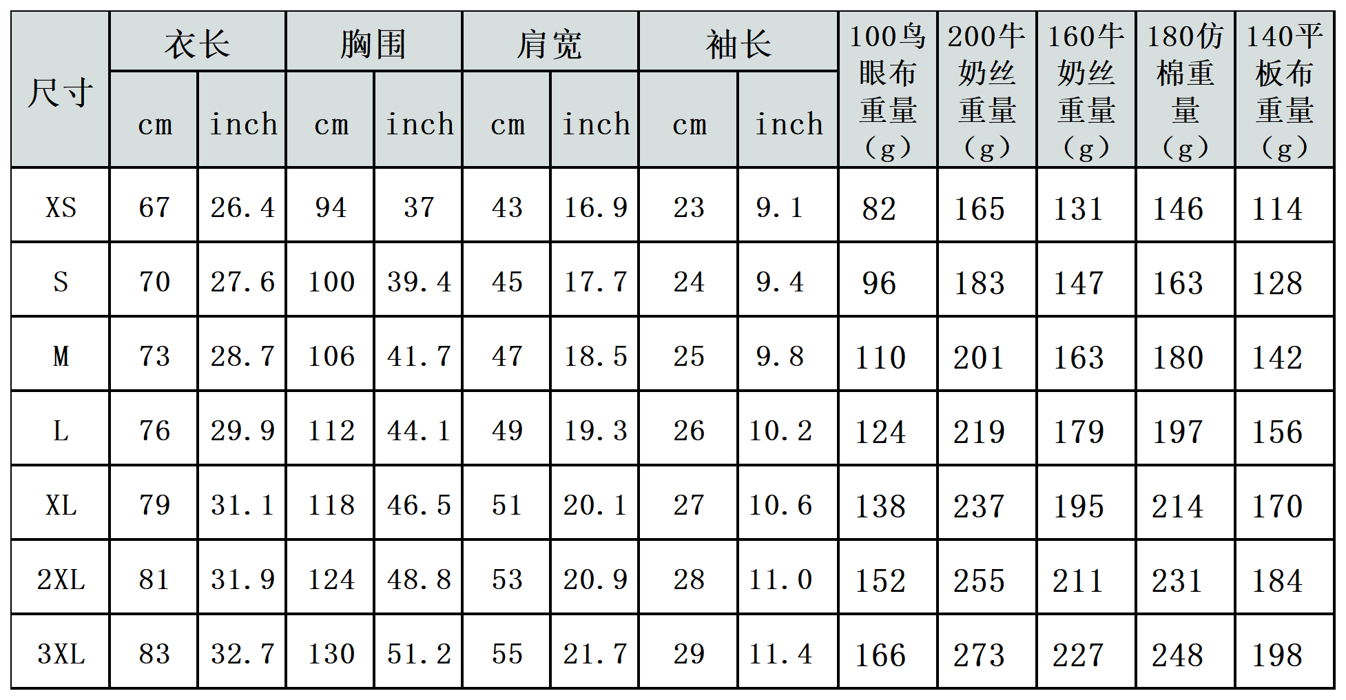【特别说明】此尺码数据因测量方法不同,误差在1-3cm内的属于正常现象。